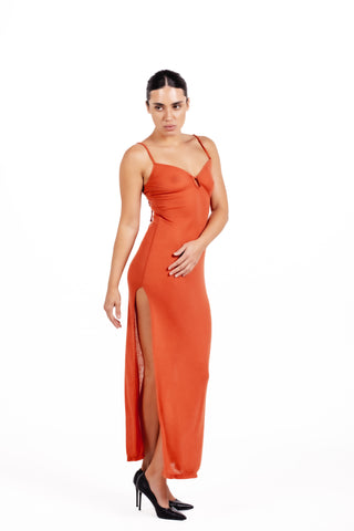 The Layla Terracotta Dress by Amour Avenue is a captivating blend of effortless seduction and refined minimalism, designed for sunset evenings, beachside soirées, and warm-season elegance.