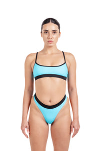 The Maren Blue Bikini Set by Amour Avenue blends sporty refinement with bold, contemporary design. Created for those who crave both comfort and impact, this set features a striking aqua blue tone contrasted with sleek black trims, delivering a fresh and modern beach aesthetic.