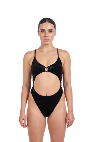 The Milan Black Velvet One-Piece by Amour Avenue is a statement silhouette crafted for bold, confident moments under the sun. Designed in a luxurious velvet-touch fabric, this piece blends elegance with contemporary edge, making it a standout choice for elevated resort styling.